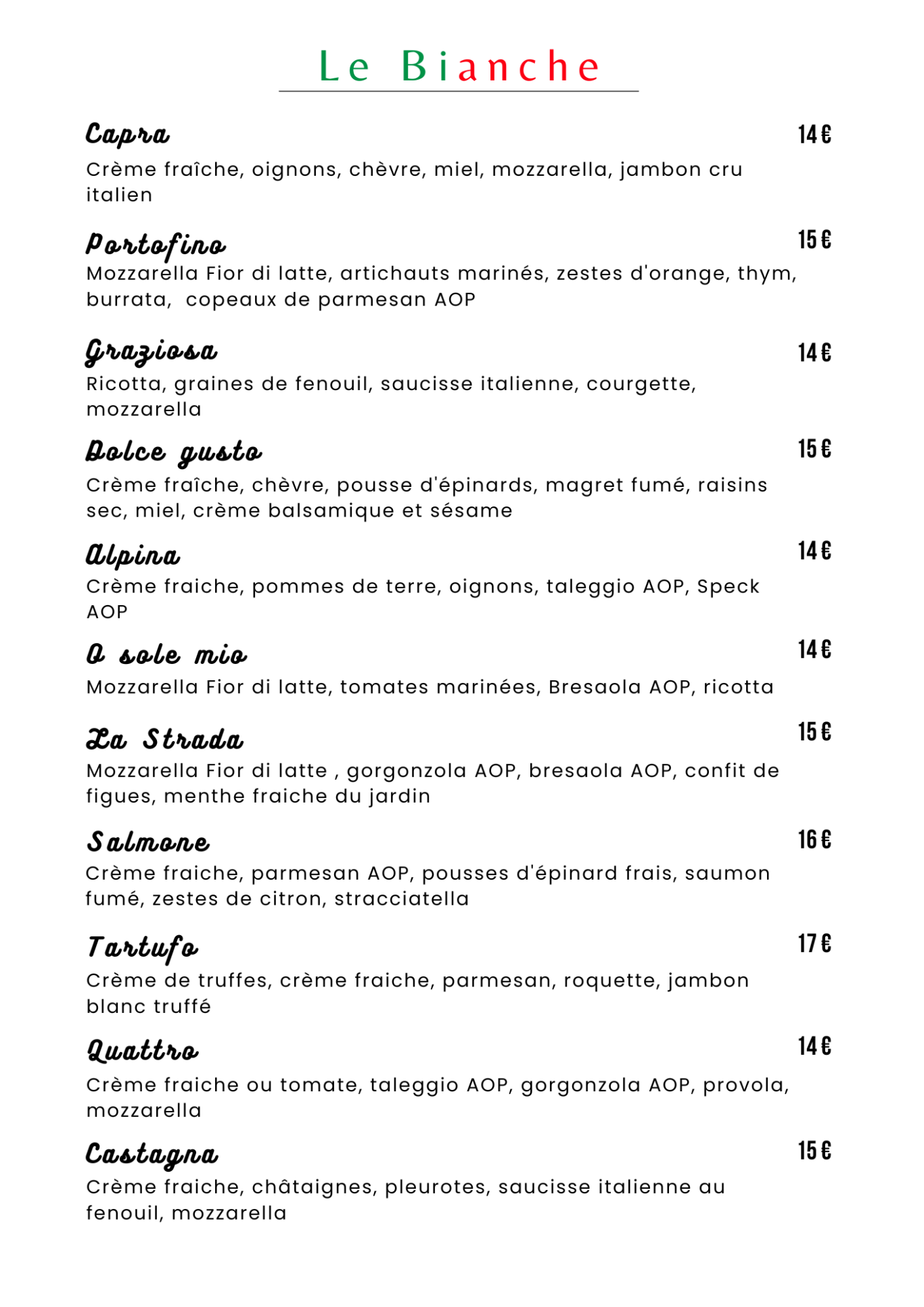 Wahou! Un vrai voyage en Italie! Des saveurs exceptionnelles et une carte a faire saliver!